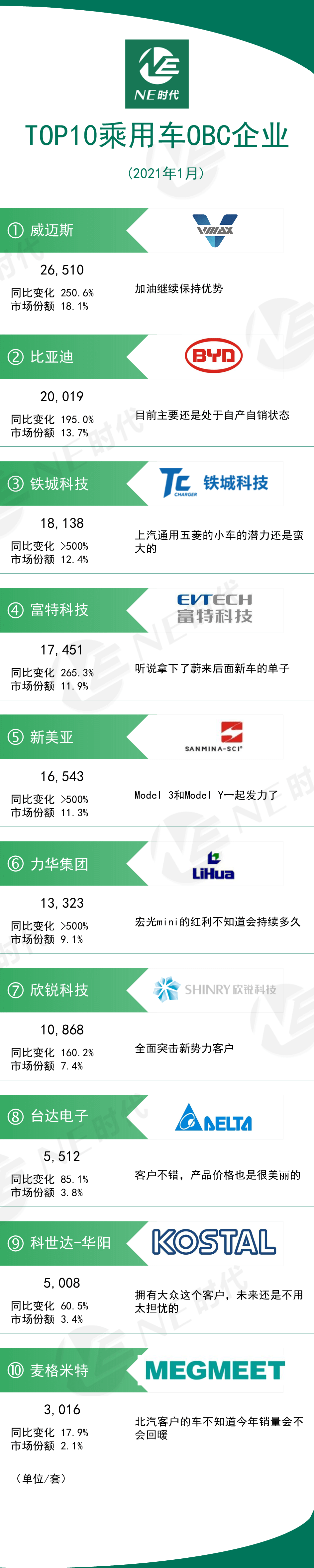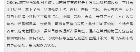 2021年1月乘用车OBC TOP10:威迈斯继续领跑OBC