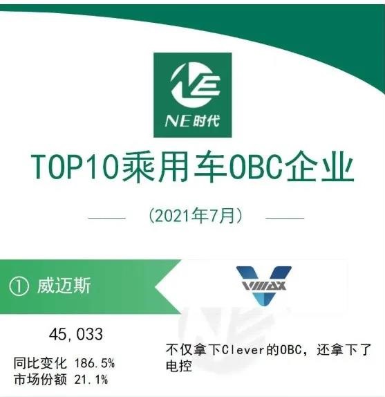 【NE数据】2021年7月乘用车OBC TOP1:威迈斯