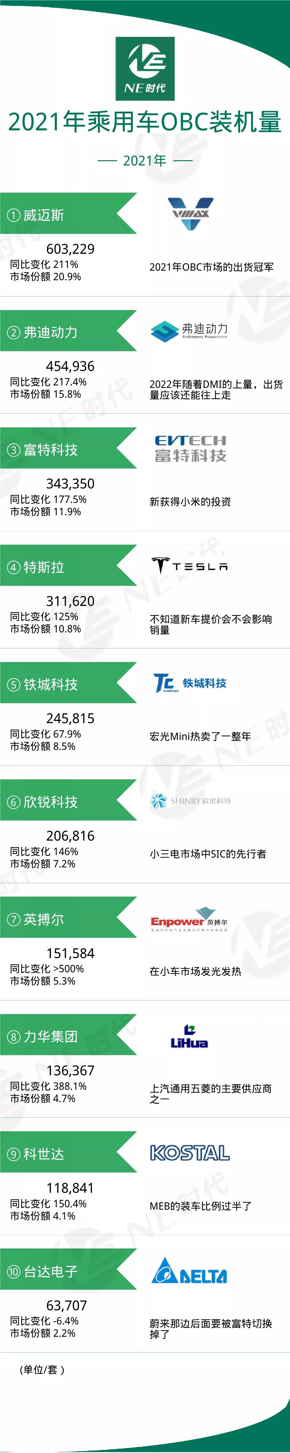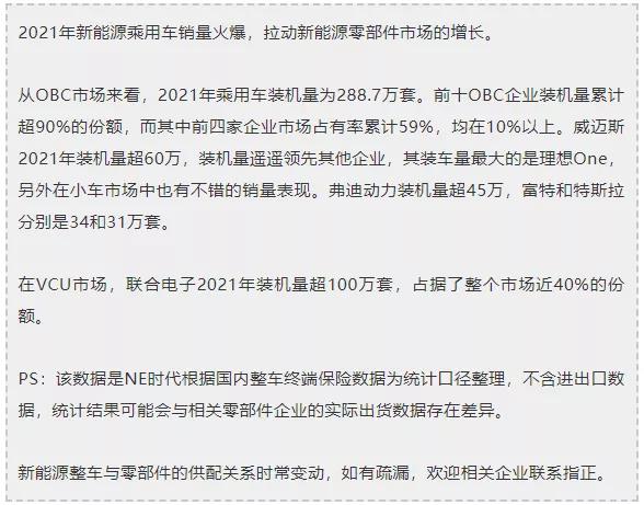 【NE数据】2021年度乘用车OBC TOP10:威迈斯稳居榜首