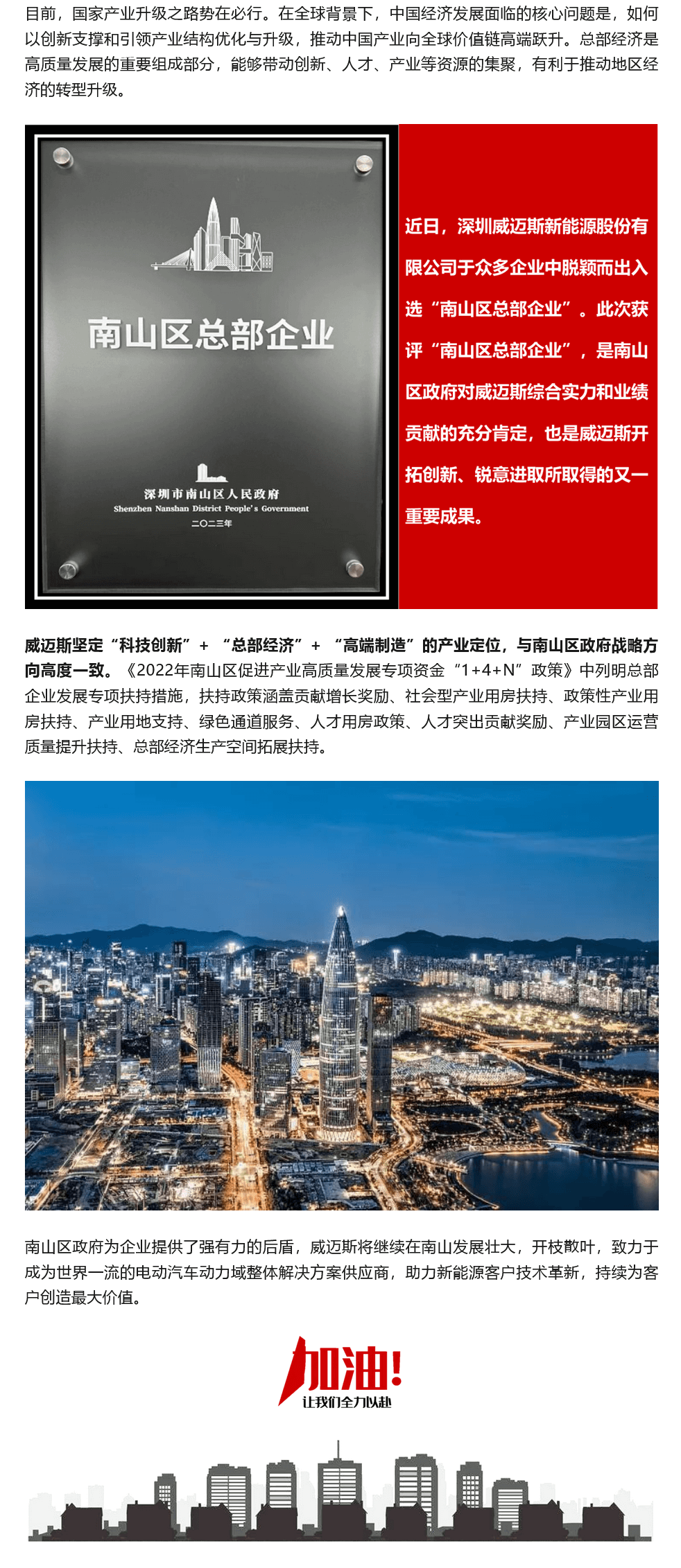 喜报 | 威迈斯荣获“南山区总部企业”称号