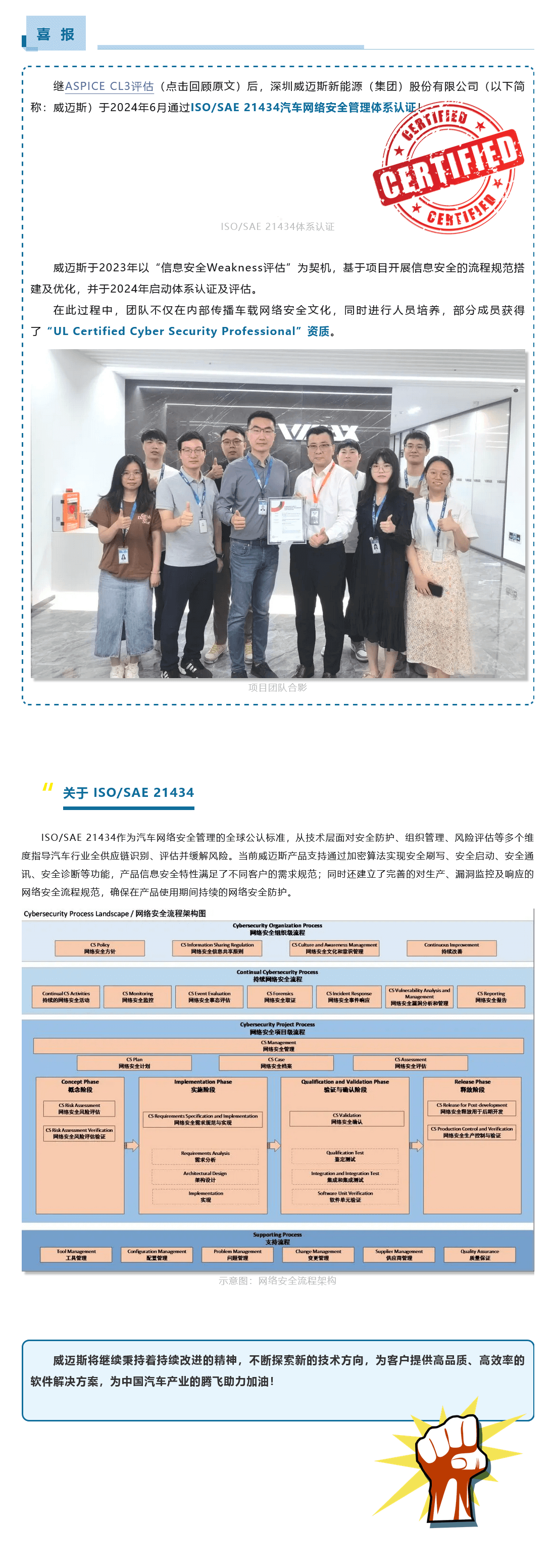【喜报】威迈斯通过ISO/SAE 21434汽车网络安全管理体系认证